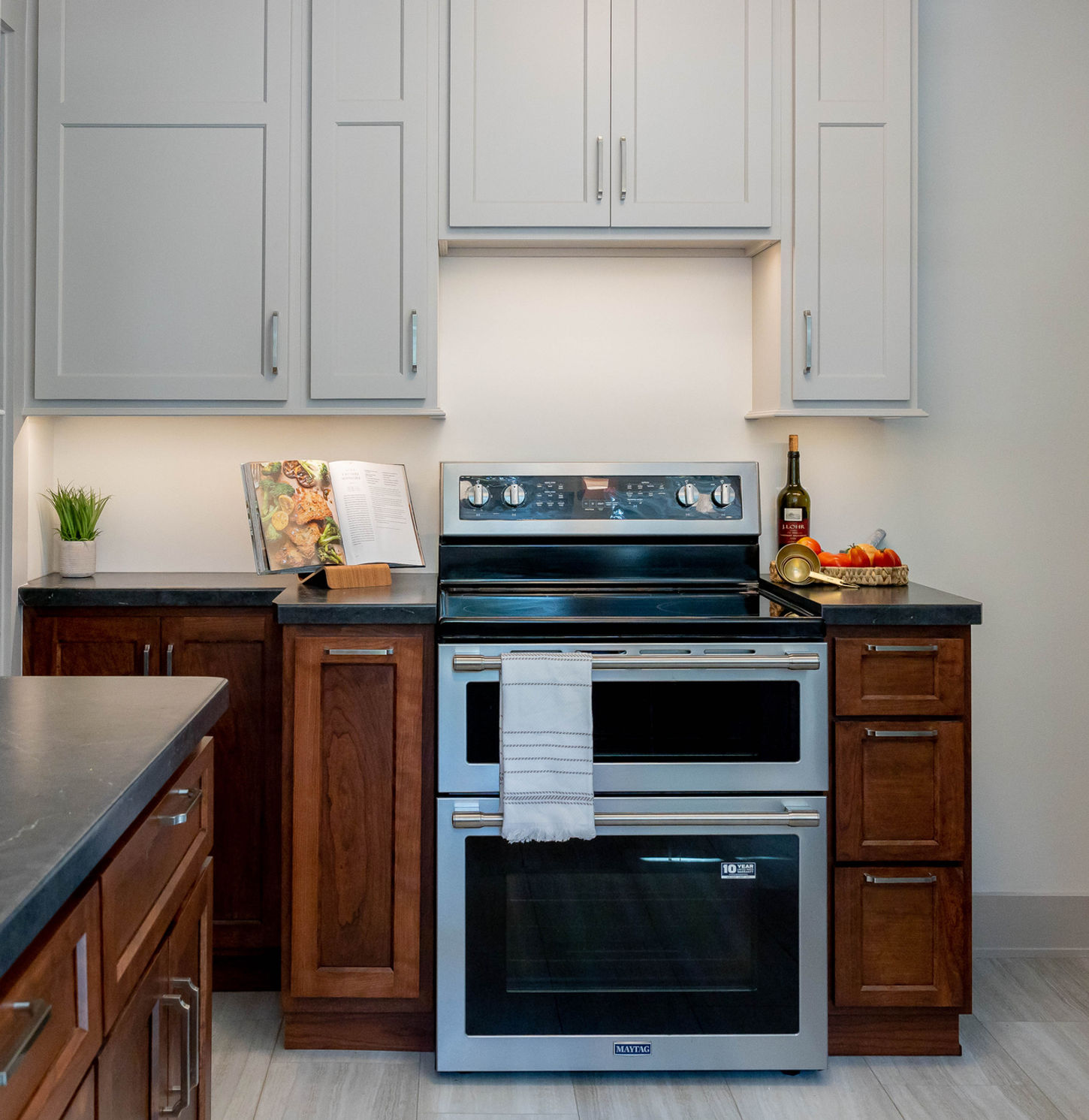 Two-toned custom cabinetry.